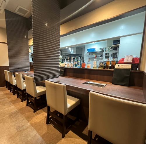 【カウンター】カウンター席には仕切りがございますので、おひとり様もゆっくりとお過ごしいただけます。お仕事帰り焼肉を食べて癒すのはいかがでしょうか。全てのお客様にご満足いただけるような、落ち着ける空間作りを心がけております。おひとり様でもお気軽にご来店ください。